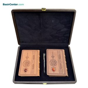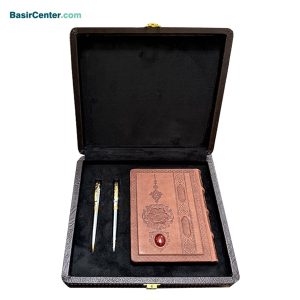مجموعه قرآن و حافظ جلد چرم طبیعی با عقیق و خودکار