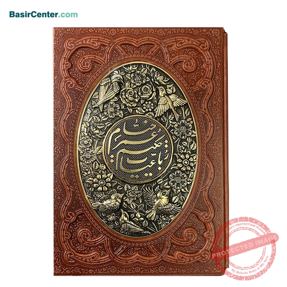 کتاب رباعیات خیام نفیس همراه با قاب کشویی برجسته طرح چرم و مس و چاپ کاملا رنگی .