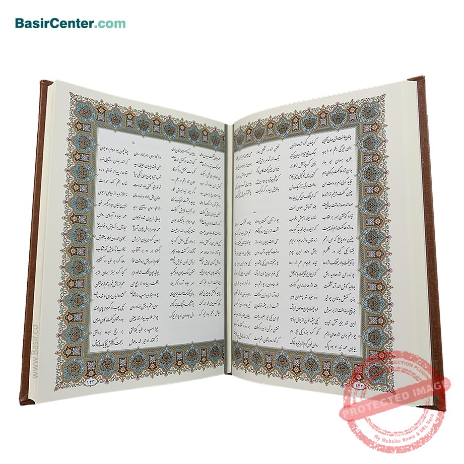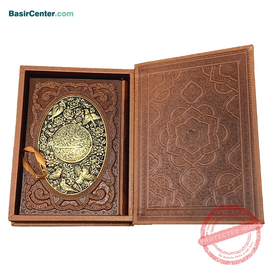 کتاب نفیس و بسیار زیبا شاهنامه همراه با جعبه (قاب بازشو) چرمی که لوح مسی با طرحی زیبا بر روی آن کار شده است. این شاهنامه نفیس دارای تذهیب زیبا همراه با کاغذ گلاسه و چاپ کاملا رنگی زیبا در قطع وزیری توسط انتشارات نوین بصیر با تخفیف های عالی در سراسر ایران توزیع می گردد.