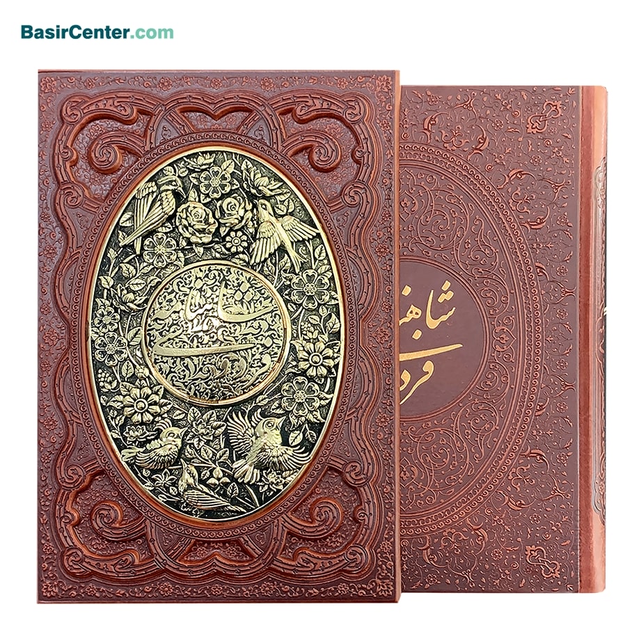 کتاب نفیس شاهنامه چرمی همراه با قاب کشویی طرح مس