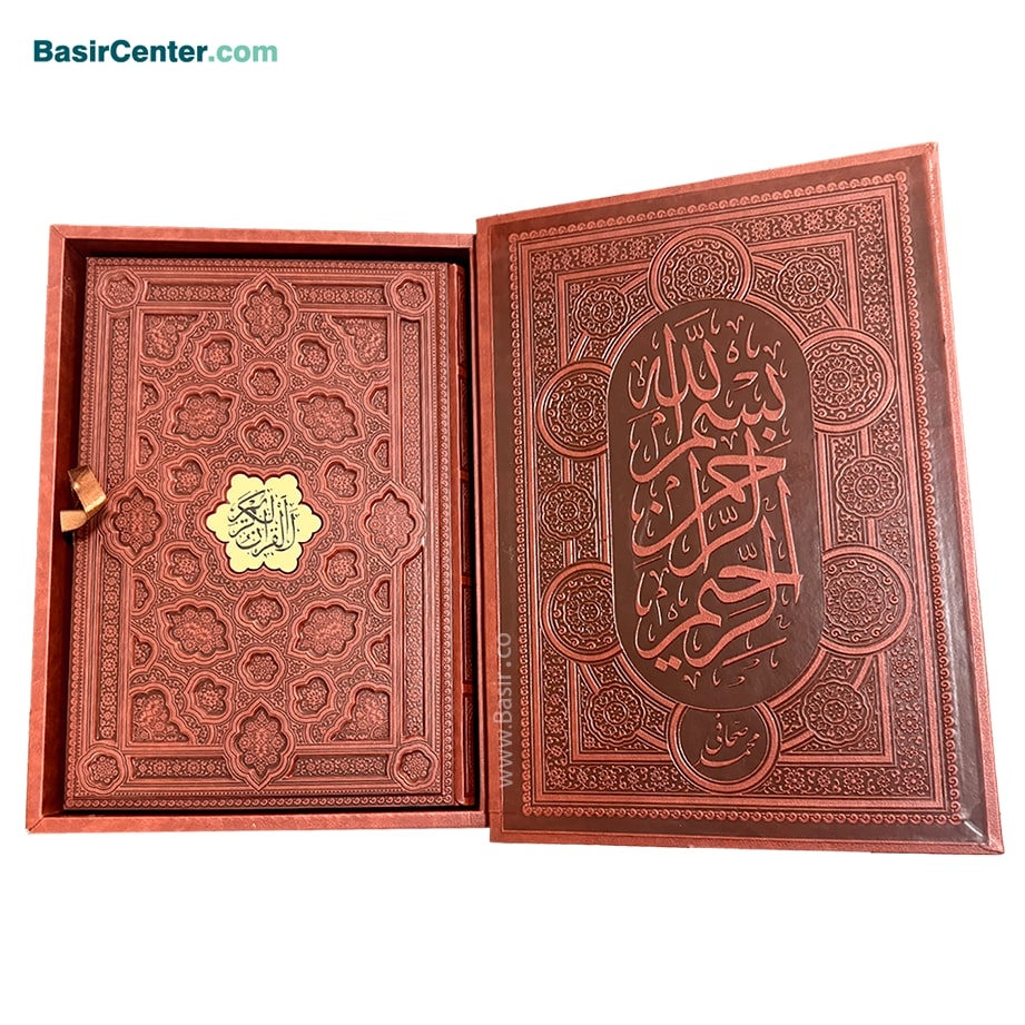 کتاب نفیس قرآن چرمی برجسته همراه با جعبه قطع رحلی