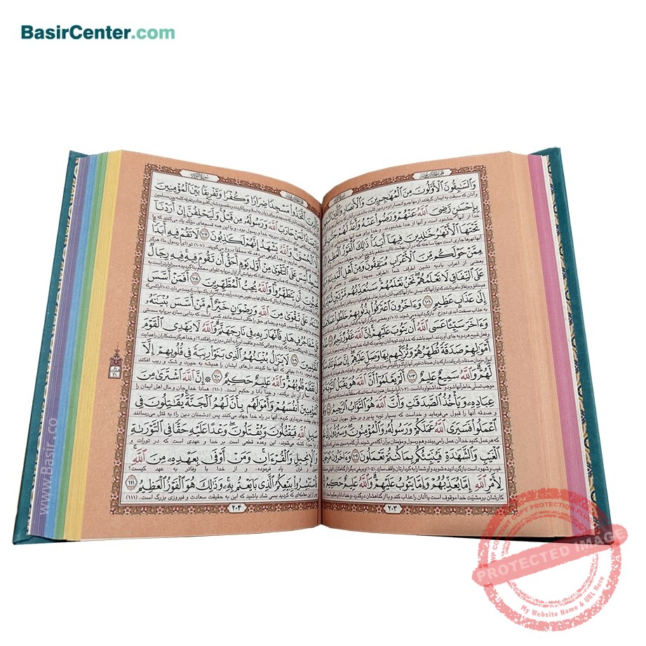 کتاب نفیس قرآن چرمی جلد رنگی لبه رنگی قطع رقعی