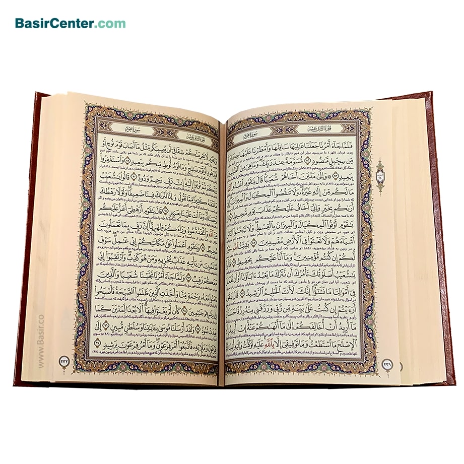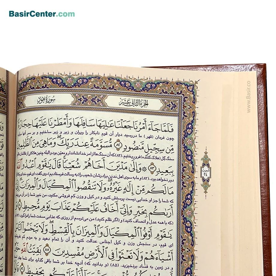 کتاب نفیس قرآن کریم جلد و قاب چرمی (ترمو) لزری با کاغذ تحریر و چاپ کاملا رنگی  و تذهیب زیبا خط عثمان طاها همراه با ترجمه فارسی الهی قمشه ای