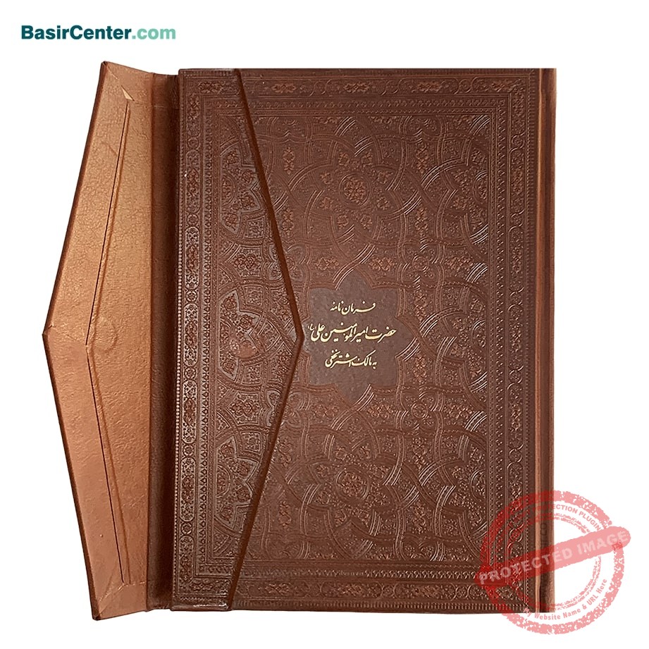 کتاب نفیس فرمان نامه حضرت علی (ع) در قطع وزیری چاپ کاملا رنگی و جلد چرمی طرح سه لتی (پاکتی) با تصاویر زیبا توسط این مرکز با قیمت عالی و تخفیف ویژه توزیع می گردد.