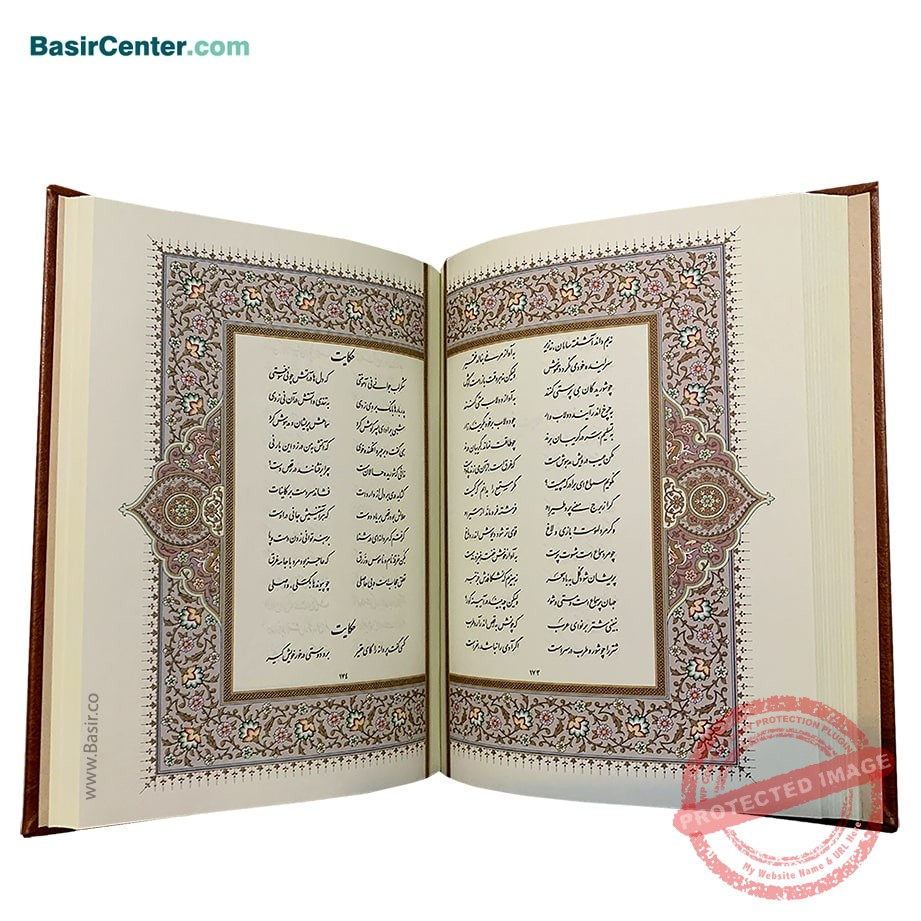 کتاب نفیس بوستان سعدی در قطع وزیری همراه با جعبه (قاب بازشو) ترمو (چرمی) طرح برجسته و کاغذ گلاسه با چاپ کاملا رنگی زیبا که به صورت تک و یا در تعداد بالا با تخفیف های ویژه توسط این موسسه در سراسر ایران توزیع می گردد.