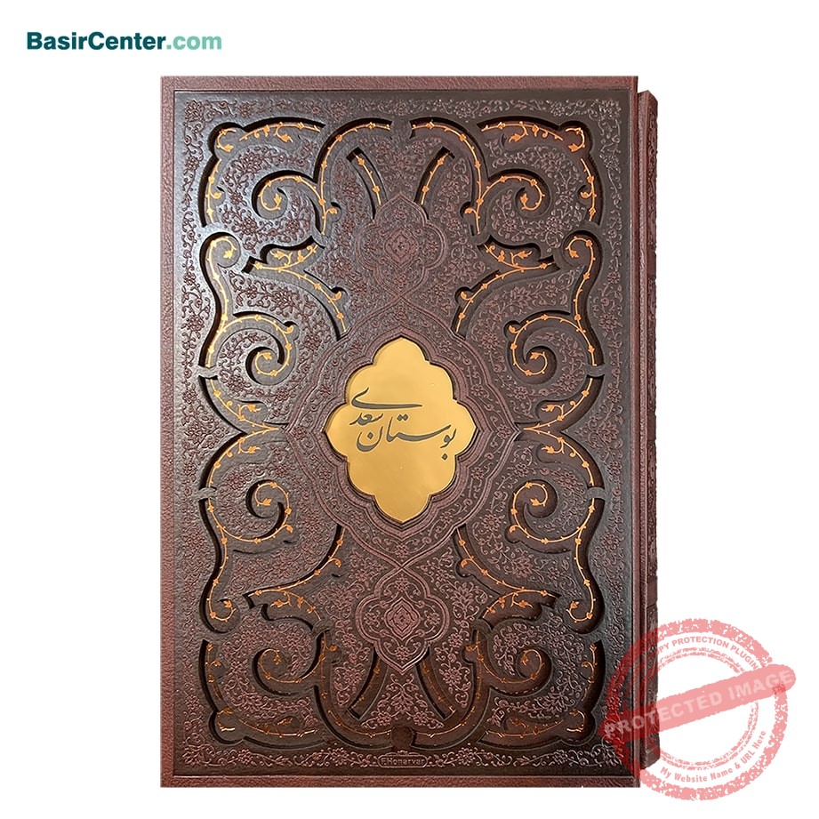 کتاب نفیس بوستان سعدی همراه با قاب کشویی چرمی طرح لیزری زیبا