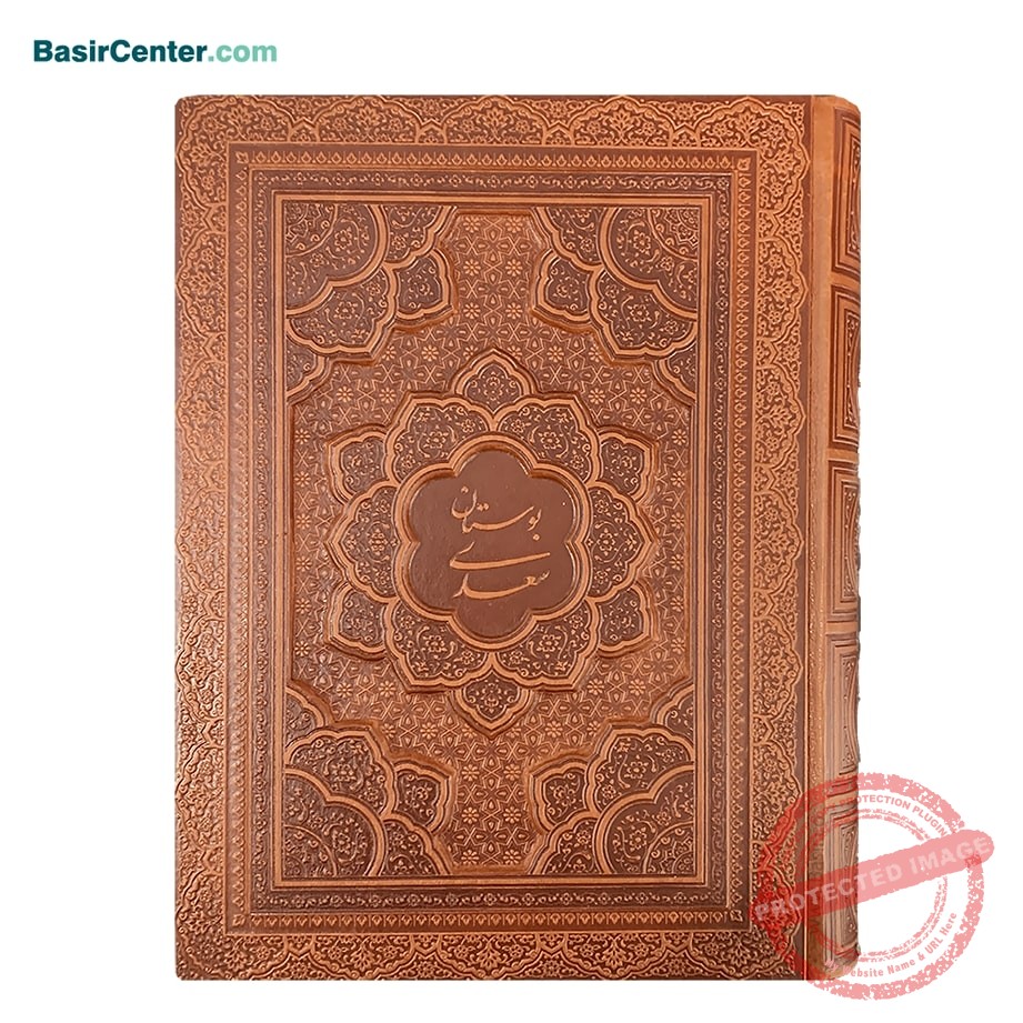 کتاب نفیس و معطر بوستان سعدی چرمی همراه با قاب بازشو (جعبه) طرح برجسته با کاغذ معطر مارگانو زیبا طرح ابرو باد و خط نستعلیق ، چاپ کاملا رنگی با تذهیب بسیار زیبا هدیه‌ای نفیس و ماندگار برای تمامی افراد با قیمت مناسب که به صورت تک و یا در تعداد بالا با تخیفیف های ویژه توسط این موسسه در سراسر ایران توزیع می گردد.